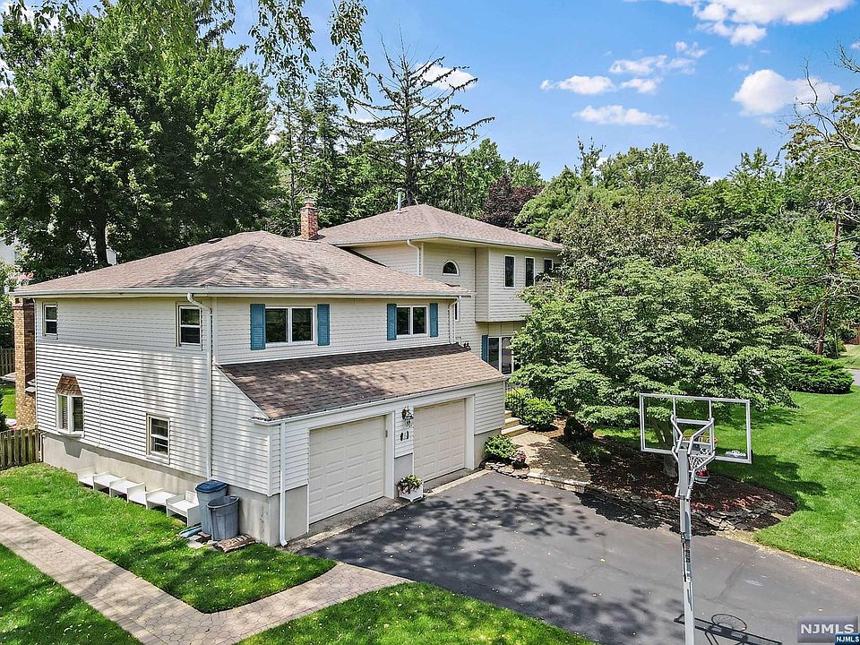 Welcome to 19 Elaine Court, a pristine tri-level split home with gleaming hardwood floors, vaulted ceilings, a 2-story entry foyer & complete pride in ownership. This home offers 2,764 sq. ft. of livable space on a .36 acre corner lot in Hillsdale. With proximity to Parks, Restaurants, Shopping, Golf & Public Transportation, this 4 bed & 3.5 bath home is perfect for today's Bergen County. The main level features an open layout with an Eat-in-kitchen, Dinning Room & Living Room leading to a private deck. Upstairs, find a full hall bath & 3 bedrooms, one with an ensuite bath. The Primary Suite, with vaulted ceilings, walk-in-closets, sitting room & primary bathroom suite, is on the next level. The ground level boasts a family room with a wood burning fireplace, powder room & access to the backyard. The lower level offers a carpeted space to hang out along with plenty of storage & an oversize laundry room. This well-maintained Hillsdale home is turnkey and a must-see!