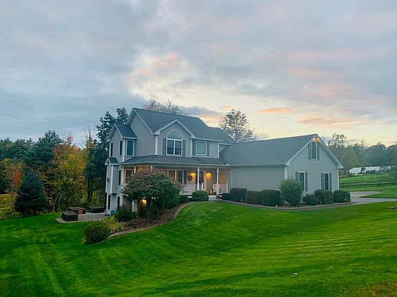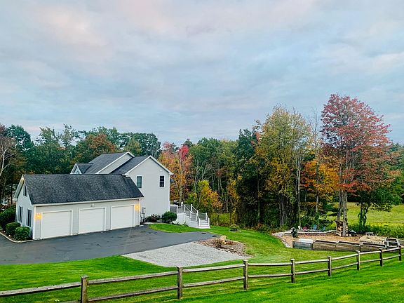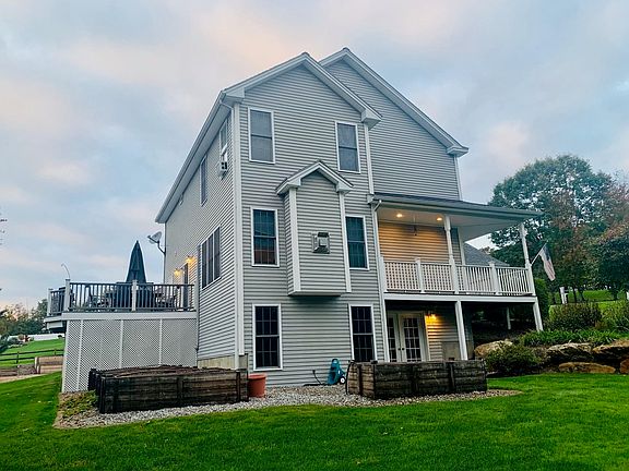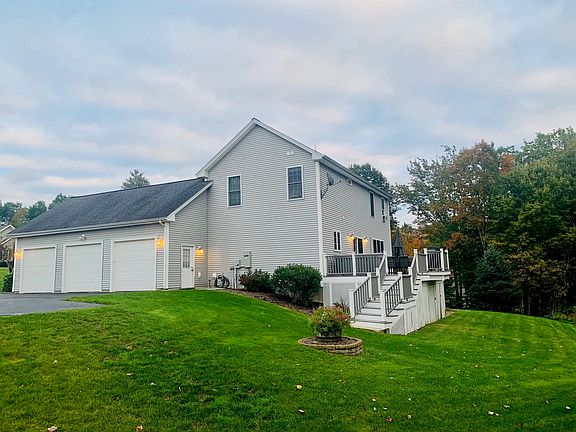 Desirable cul-de-sac neighborhood two min to Lake Winnisquam and 20 min to Gunstock Mountain. This spacious colonial shows pride of ownership, including a newly sealed paved driveway. Lovely, landscaped yard with irrigation, fourteen raised beds with drip irrigation system and your own pumpkin patch. A recreation area and firepit to enjoy the tranquil evenings as well. Enter through the three-car garage or from wrap around farmer's porch through the mahogany front door into the cathedral foyer. The first floor includes a dining room which connects to an oversized great room with gas fireplace and mini split provinding AC/heat. A maple kitchen with stainless steel appliances, lots of storage and adjorning laundry and 1/2 bathroom. Take the slider off of the dining nook onto the massive back deck that has space for a table, grill, and includes a six-person hot tub. The second floor consists of a primary bedroom which includes an ensuite with double vanity, separate water closet, jacuzzi tub and stand alone shower. The second bedroom includes a cathedral ceilling and third has its own walkin closet. The lower level has French doors that lead out to the side yard, this level also includes all major utilites and additonal family room with cedar closet and workshop. addition space above the 27.5x35.7 three car garage for storage or expansion with heating conduit already roughed in. 2/1 BUY DOWN MORTGAGE ASSISTANCE AVAILABLE...