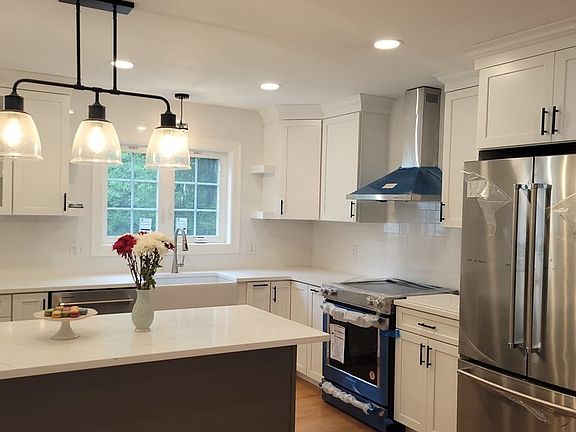 * Soon to be completed New Construction * Sophisticated Sun-filled Colonial with traditional appeal and modern design. This home offers an open floor plan with oversized kitchen / dining room / family room featuring quartz counters, quartz center island, select cabinetry and stainless steel appliances. Home office with crown moulding and wainscoting. Gleaming hardwood floors, sliders leading to large outdoor deck and oversized custom stone patio accented with stone walls. The grounds are perfect for entertaining and enjoying the serene surroundings. The second level boasts a Primary suite with a walk-in closet and a spacious dressing room, nursery, small office or second closet. Three additional bedrooms, a laundry room and two full baths complete the upstairs. Finished lower level with space for gym / media room / play room plus storage. Three levels of living space quietly situated deep into the neighborhood
