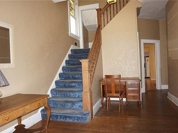 CLASSIC CRAFTON HOME WITH CERAMIC TILE COVERED FRONT PORCH~ENTRY HALL HAS SPLIT STAIRCASE FROM ENTRY AND KITCHEN~LIVING ROOM FIREPLACE W/WOOD BURNER INSERT OPENS TO FORMAL DINING W/DEC FIREPLACE~EAT IN KITCHEN W/CENTER ISLAND WALKOUT TO BACK DECK &YARD~DETACHED GARAGE ACCESSED FROM BACK ALLEY~FOUR BEDROOMS ON SECOND FLOOR W/ORIGINAL WOOD TRIM & FULL BATH~THIRD FLOOR EN SUITE W/FULL BATH,WALK IN CLOSET AND LARGE BEDROOM~OFFICE OR DEN ON THIRD FLOOR WITH WALL OF STORAGE CLOSETS~GREAT SPACE FOR YOUR GROWING NEEDS~ROOF 2016, HEAT 2009~EXTERIOR FINISHES NEEDED ON TRIM & PAINT (AS IS)~NEAR SCHOOL,PARK, PARK AND WALKING TRAILS TO CREEK~MINUTES TO DOWNTOWN,AIRPORT AND MAJOR HIGHWAYS. Exterior and garage being sold in AS IS condition.