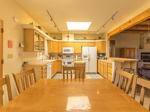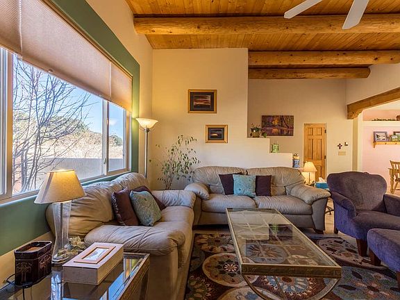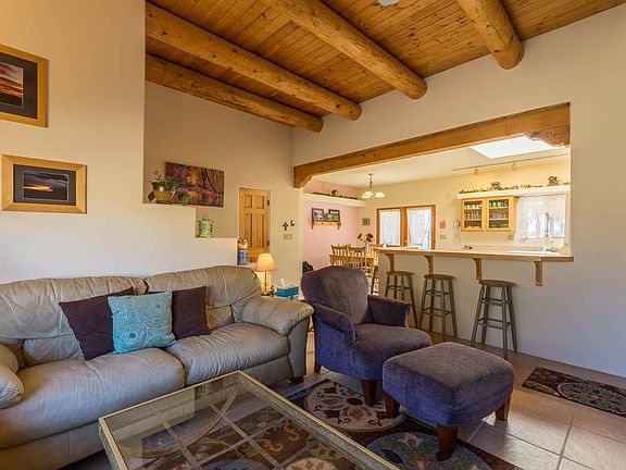 Santa Fe Style 3 bedroom 2 bath home with a large 3 bay garage. This beautiful home features skylights, vigas, 3 fireplaces, updated master bedroom, and a great backyard with sunken bancos and fireplace along with a deep covered portal for backyard barbeques, entertaining, and star gazing.