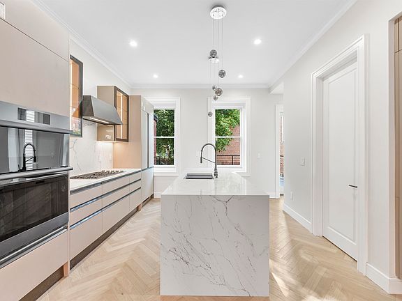 A Meticulously Curated 5 Bedroom + 3 Full Bath + 1 Half Bath Historic Townhouse In Downtown Jersey City NJ. With its classically ornamental brownstone & brick facade, 19 Erie St imparts a completely reimagined contemporary design on the interior to create a harmonious, lavish one-family home. Custom design elements and a distinctly elegant design palette run throughout this home. The layout was completely transformed to incorporate as much natural light + open space as possible. Clearly keeping in touch with its historic roots, classic brownstone touches are preserved, while modern details are incorporated throughout the home, nodding to the traditional design essence. Every square-inch of the property has been intricately designed with the end-user in mind. The garden level features a beautiful finished space with 8’ ceiling height, a full sized guest bedroom, a remarkable full bathroom with floor to ceiling tiles, grohe fixtures, a dedicated laundry room, and an additional living space with access to the shaded portion of the backyard. The rear garden has been completely updated with custom paving and custom cedar fencing, ideal for entertainment while maintaining an appreciable level of privacy. The main parlor floor is a true showstopper: Unique elements such as the custom millwork, the 10-foot ceiling height, the herringbone white-oak engineered floor, and many others, are the type of impressive design features that distinguish 19 Erie Street from other cookie-cutter renovated townhomes in Downtown Jersey City. In addition to these features, the premiere, Italian-made Scavolini, chef’s kitchen boasts Dacor appliances, a double oven, a 5-burner stove, a panel dishwasher, a wine cooler, and even a garbage disposal, all accentuated by the glorious unique statutario gold waterfall center island. Beyond the kitchen, there is also a powder room on this floor, and access to the 200+sqft private rear deck that connects the kitchen to the rest of the backyard space. Above the main level, the second floor contains 3 handsomely proportioned bedrooms and another full bathroom, also with Grohe fixtures, floor to ceiling tiles, and a two-sink vanity, making it easy for multiple people to get ready in the morning. Finally, the uppermost floor contains the primary suite. This level features a gorgeous en suite configuration with two separate, spacious walk-in closets. The primary bathroom contains a standalone deep soaking bathtub, a separate standup shower, heated floors, a motion controlled toilet seat and a gorgeous accent wall. Not a penny was spared during renovation. The developer even opted to purchase a top of the line Trane two-zone HVAC system, a Navien tankless water hater, a surround sound system with individual zones in each bedroom, and so much more. Located just a 4 minute walk from the Grove Street Path Station, and only one block away from the Newark Avenue Pedestrian plaza, 19 Erie St is situated just moments away from world-class amenities, entertainment, and a plethora of public transportation options. From top to bottom, 19 Erie St brings the drama, please reach out, showings are by appointment only.