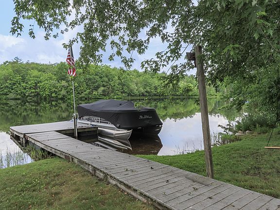 Big Island Pond Waterfront year round home. Waterfront colonial home offering 2376+-sqft of living space. Open concept living area with window wall to soak up the view and a glass door leading to yard and the water. Plenty of cherry cabinets in the great working kitchen - center island with a eating bar accented by granite counters and SS appliances. Also on the first floor is a family room the 2nd bedroom and a full bath. Spacious primary bedroom with plenty of windows to look at the water - bedroom leads into a full bath. Down the hallway leads to the 3rd bedroom and the laundry room. Beautiful level lot with 50+-ft on the water with a gorgeous western view of the pond. Plus 2 car garage. Convenient location.