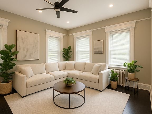 This sunlit first-floor apartment blends 1900s charm with modern updates. Enjoy soaring ceilings, hardwood floors, and a bright living area.