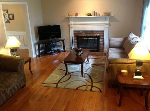 Charming young duplex in fantastic cul de sac neighborhood. This is the best of both worlds here! 3 bedrooms and 2.5 baths.1500+ square feet , formal dining room with wainscoting, eat in kitchen with lots of cabinets open to dining room and large fireplaced living room to rival a traditional single family home. Kitchen has lots space and room for island or table. Off the formal dining room are sliders to a beautiful covered mahogany deck overlooking large yard with fenced area for your furry friend. Master bedroom is large with vaulted ceiling two closets and private bath. All new hardwood and carpets, central air, pull down stairs to attic for storage, finish-able basement with large window all this and so much more. This cul de sac location is just what you've been looking for. Seeing is believing!