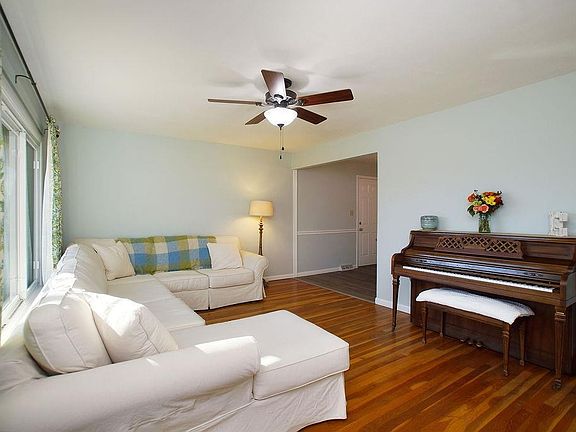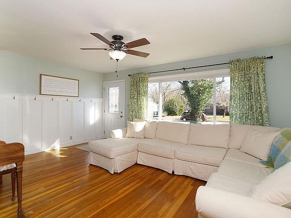 Welcome to this charming 3 bedrm ranch w/ new roof! A cheery red front door opens into the entry w/ white wainscotting & a light filled living rm w/ large picture window & hardwood floors. The living rm flows into the breakfast rm which opens to the kitchen w/ a peninsula for serving. Both rms boast new luxury vinyl flooring & lighted ceiling fans. There's extra storage in the walk-in pantry, gleaming oak cabinets & even a new range for the cook! Hardwood floors are in the hall & 2 of the 3 bedrms including the master. The updated hall bath is roomy w/ double sinks, 3-door medicine cabinet, tile flooring & tub/shower combo. The LL offers a spacious, newly carpeted rec room prewired for a flat screen. It also has a cedar closet, workbench, more storage shelves & a walk-up door to the back yard. HVAC is 3 years old & all windows are updated. The extra deep garage also has a workshop. The level backyard is fully fenced w/ a playset for kids & mature trees shade your patio while you relax!