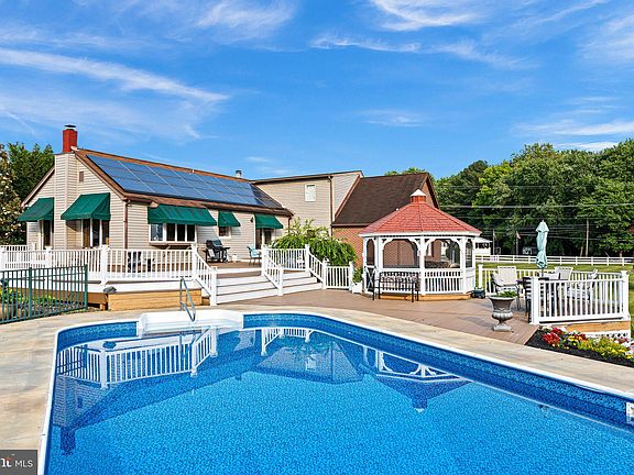 This beautiful home has been loved and cared for by this family for three generations. Convenient to Fair Hill Training Center that offers Equestrian events, riding and walking trails. Minutes from the University of Delaware and amazing restaurants and shops in Downtown Newark. Over 12 Acres so bring your horses, there are already fenced pastures, a riding ring, multiple run-in sheds with electric and water troughs. Enjoy your morning spending time on the beautiful front porch sipping coffee and spend summer evenings relaxing on the new composite deck with in-ground pool. Features include a large two-car detached garage with electric, a carriage home with two-car garage that offers propane heat, electric and access to water will make a great space for entertaining and enjoying parties by the pool. Need more storage, there is also a large shed with electric and a concrete floor. Main level features an owner's suite with walk-in closet, a huge, updated bath with soaking tub, separate shower with glass doors, an oversized vanity, radiant heated floors and washer and dryer for convenience. The kitchen offers ample cabinet and counter space, stainless appliances leading to the separate dining room. The spacious family room features a gas fireplace and opens to the sunroom with vaulted ceilings and custom built-in shelving. The upper level offers two spacious bedrooms with new carpet and a full hall bath. Partially finished basement that offers plenty of additional living space. The current owners have made so many wonderful memories here over the last 80+ years and hope the new owners will enjoy so many wonderful years here too.