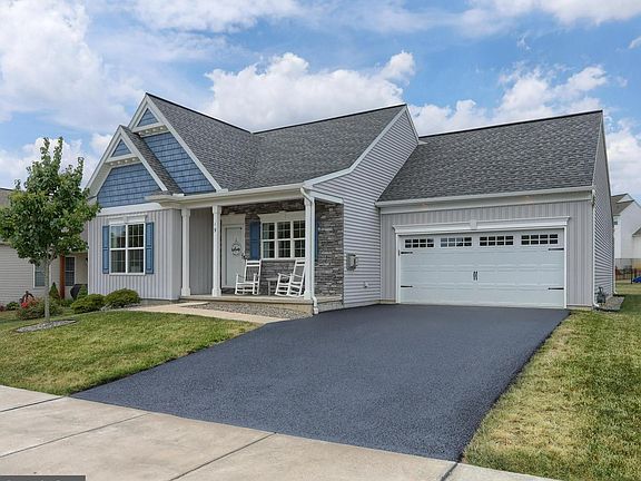 MULTIPLE OFFERS RECEIVED.... Deadline set for 6pm Saturday July 13th Amazing better than new barely lived in Ranch Home in highly desirable Landmark Homes Olde South Crossing Community! This well kept home shows pride of ownership throughout, which you will see upon opening the door! The popular open floor plan is sure to please with spacious rooms & a great flow making it the perfect home for entertaining or just plain relaxing. The 9' ceilings, huge kitchen island/breakfast bar complete with granite counters, pantry, like new appliances, under cabinet lighting, garage with epoxy flooring/extra storage or work space, pull down stairs for storage, & already set up to plug in your E-Car! The family room is adjacent to kitchen with gas stone fireplace, breakfast room, main floor laundry, and the spectacular finished lower level (also with 9' ceilings, & another laundry hookup if wanted), beautifully designed family room with fireplace, bedroom with walk-in closet, bath featuring walk-in tile shower & kitchen (ready for appliances) with sink, breakfast bar with granite counters, under cabinet lighting, pantry & more.... making this the perfect in-law / family / student space or extra fun entertaining space! Located within walking distance of schools including LVC, walk in to town for the eateries, coffee/bakery shops, library, theater & more! Short drive to Indiantown Gap, turnpike, VA & Hershey! Grab your favorite beverage to watch the sunsets from your front porch or back patio! Don't miss this one! This community has a Lebanon 17042 mailing address only (everything about it is Annville!)