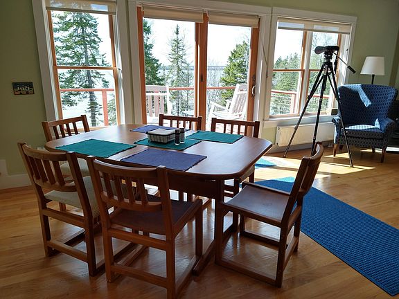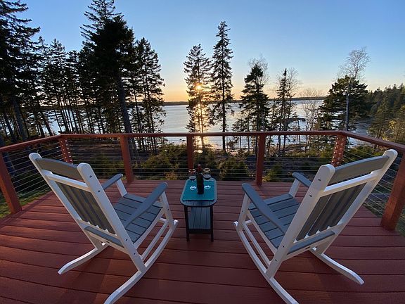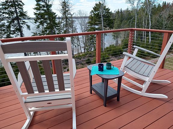 Hard to compare, impossible to forget. This custom-built, 3-bedroom home sits above the shores of Flat Bay on a private double lot of over 4½ acres with 451 feet of water frontage. Enjoy morning coffee on the deck watching boats, clammers, and birds starting their day. Then enjoy front-row seats for sunsets with your 2nd favorite beverage from the same beautiful deck. In between, from mid-tide on you can head down to the water's edge to launch your kayak and explore Flat Bay. In the evenings, enjoy an outdoor fire on the terraced lawn as nature's sounds and vibrant stars surround you. The interior features an open plan living room and dining area with hardwood floors, wood stove, and sliders to the deck. The adjacent large kitchen boasts tile floor and back splashes, stainless appliances including a 5-burner gas range. A first-floor primary bedroom and ensuite bath with double vanity, whirlpool tub, and separate stall shower, and a ½ bath complete the first floor. The lower level features two bedrooms and with the excellent cell coverage here a common room with walk-out to the terrace could serve as an office, or play room - all with water views, a full bath with shower, a laundry/utility room, a separate storage room, and plenty of closets. The unfinished 2nd floor, accessed by full, finished oak stairs, awaits only your vision to create an additional bedroom, office, or other space. The oversized double garage with electric openers is insulated and heated, pre-wired for an EV charger, and has even more storage space above. Energy efficient, meticulously maintained, with lots of driveway space for your RV or boat, the only thing this home needs is you. (RV does not convey)
