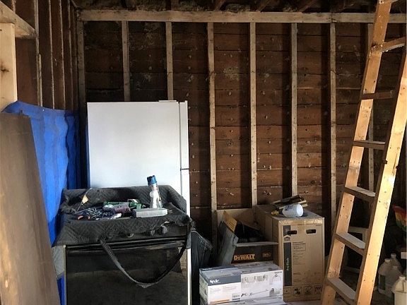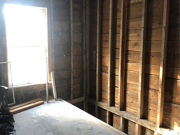 Two family home with nice front porch, large back yard and off street parking. House is completely gutted. New supports, framing and some flooring have been completed. Needs all new plumbing, electric and heating. Windows are older.