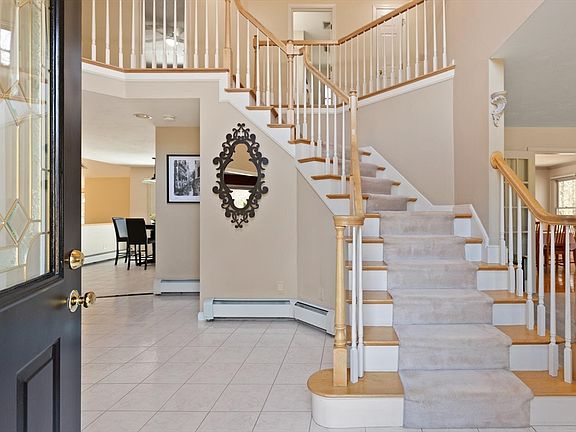 ~Milestone Estates~Custom Designed Colonial with Distinction! Enjoy the stunning two story sun filled open foyer, a private office accented by double french glass doors and the gracious living room. The inviting dining room features over-sized windows providing a picturesque view of the yard highlighting the change of seasons! Much appreciated is the versatile layout and classic design of the kitchen featuring an island with plenty of seating and a designated area for additional dining.The dramatic vaulted step-down family room with secondary staircase features a grand natural stone floor to ceiling fireplace accented by palladian windows filling the room with sunlight.The primary bedroom en-suite features a custom designed walk-in closet/dressing room (10' x 12') and a well appointed bath. ~Finished Walk-out Basement~ Fresh interior paint, REPLACED HEATING and AC systems! Excellent location near routes to Boston and Providence. Convenient to nearby schools, shopping and restaurants.
