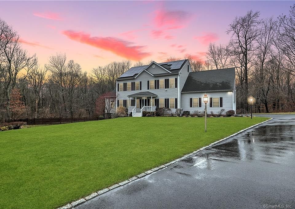 Welcome to 19 Founders Way! This charming, expanded colonial in sought-after Amity School District with over 4,500 sf of living space sits on approx. 7 acres of private land! An open concept plan flows from the granite counter kitchen with stainless appliances, island with cooktop and double wall oven to the breakfast area that opens to the great room with a custom gas fireplace. There are hardwoods throughout and abundant windows to let in natural light and allow views of the woods beyond the landscaped yard. A mudroom with custom storage sits adjacent to the 3-car garage. The formal dining room with beautiful wainscoting is large enough for all of your gatherings and a powder room complete the 1st floor. Upstairs are four bedrooms including the primary suite which boasts a full, tiled ensuite bath with a jetted tub and separate shower and a custom designed walk-in closet with loads of storage features. The laundry room is located on bedroom level with a sink, folding and hanging areas. The heated finished basement offers a full bathroom, 5th bedroom and can function as a guest suite, in-law or entertaining space for all of your get-togethers with the adjacent walk-out sunroom. The fully fenced back yard has a stone patio, play set and a large shed. A sizable walk-up attic completes the home with plenty of room for storage. A fully paid off solar contract, new driveway and irrigation system are just some of the many features of this beautiful home! Electric bill is approx. $200/mo, 3 zone heat/air, curtain drains and new sump pump installed in basement, security system, new driveway, sprinkler system for landscaping