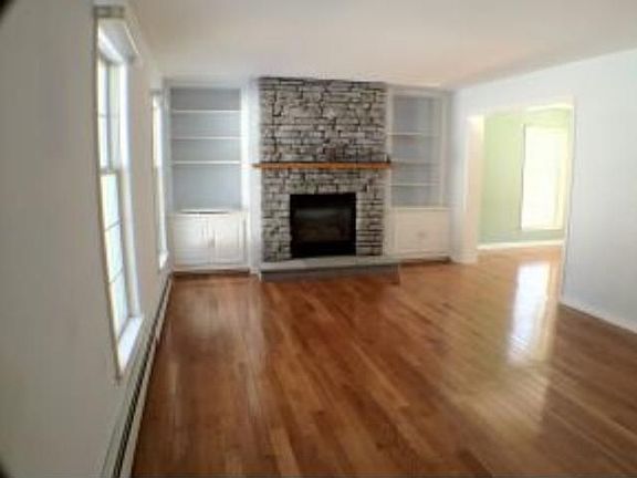 Gleaming hardwood floors and bright sunny space await you in this very private 4 BR, 2 BA Colonial home. Stainless appliances, eat-in kitchen w/island, mud room & 3/4 bath both conveniently located just off the side entry. The home flows beautifully, from the dining room just off the kitchen to the very large living room w/ gas fireplace, built-in bookcases and a lovely stone chimney. Also on the first floor is a family room/guestroom/office - it has a closet and could be either, as well as a 3 season porch just off the kitchen. Upstairs offers a HUGE master & 3 additional bedrooms with a shared full bath in the hall (w/private access from master). There is an additional bonus room above the oversized 3 car garage with seasonal views of Russell Pond. There is also a full unfinished walk out basement and a whole house generator. A country home in great condition in a lovely neighborhood, offered at a very good price - Come see for yourself!