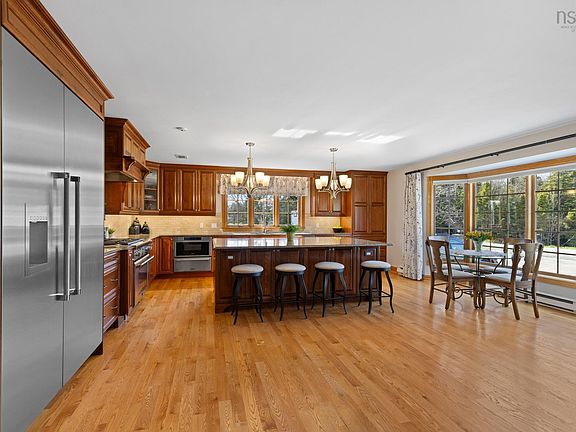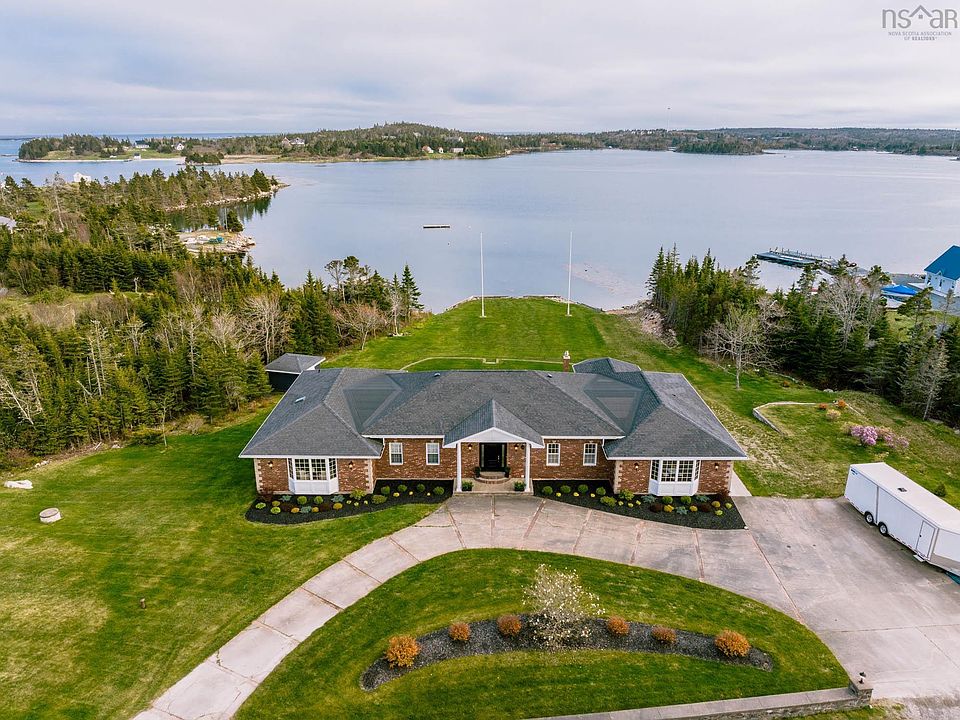 Nestled along the pristine shores of Sambro, this exquisite 4-bedroom bungalow offers unparalleled living on Canada's ocean playground. Located on a private lane, this home provides a serene retreat with breathtaking ocean views. Upon entering, a spacious foyer welcomes you with wrap-around staircases leading to the lower level, showcasing ocean and landscaped yard views. The sunroom, bathed in natural light, transitions seamlessly from the living space, creating an inviting atmosphere. The eat-in kitchen, renovated by Traditional Cabinetry, is a chef's dream with Thermador appliances, quartz countertops, and a professional coffee bar. Adjacent to the kitchen, the formal dining room is perfect for hosting, while the classic study exudes sophistication with custom bookshelves. The primary bedroom is a sanctuary, featuring a newly renovated 5-piece ensuite with a spa-style shower, porcelain tiles, in-floor heating, and double closets. Each additional bedroom has walk-in closets with ample built-ins. A luxurious main bath services these bedrooms. The lower level is designed for entertaining and relaxation, with a family rec room, full wet bar, wine room, and snooker pool table. A second family room offers additional relaxation space, while a 2-piece bath adds convenience. This level also features a versatile bonus room currently set up as a gym but adaptable to a home theater, hobby room, or playroom. A laundry room, utility room, and workshop provide functional spaces for everyday needs. This residence perfectly balances luxury and comfort, creating a haven for those seeking an elevated living experience. Every detail, from meticulous landscaping to high-end finishes, has been carefully curated for an unparalleled living environment. The serene surroundings and modern amenities make this home a true gem on Nova Scotia’s coastline.
