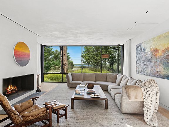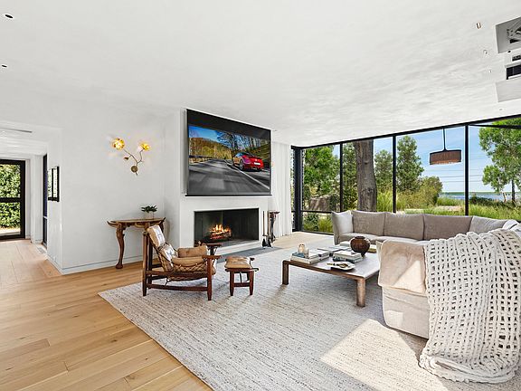 of indoor space and seamless outdoor living. This modern 4-bedroom, 4.5-bath home includes a flexible fifth sleeping area and a loft-style office, ideal for relaxed summer living. A brand-new chef's kitchen is a culinary dream, featuring two Wolf steam ovens and a full-size Wolf oven, and flows into a sunlit living room centered around a wood-burning fireplace. Floor-to-ceiling glass walls bring in natural light and capture breathtaking water views throughout. The home also features a state-of-the-art screening room with water views, perfect for stylish entertaining, and wood-burning fireplaces in both the dining and living rooms add warmth and charm. Two luxurious primary suites, one with a private terrace, wet bar, and fireplace, offer spa-like comfort across two spacious levels. The serene primary bath includes a steam shower, soaking tub, and views of both the water and the surrounding forest, creating a peaceful retreat. Perfectly positioned for outdoor enjoyment, the grounds include a heated gunite pool, a freestanding cabana, and a long, manicured lawn framed by mature landscaping. The property also comes fully equipped with two electric bikes and three traditional bikes for the 3-minute ride into Sag Harbor town, plus a kayak and a beachfront permit for Long Beach, ideal for tranquil paddles and unforgettable sunset kayaking sessions. Enjoy privacy, beauty, and effortless access to Sag Harbor's best, including the Bay Street Theater, Sag Harbor Cinema, waterfront dining, and local boutiques. This refined waterfront escape is available for the full season or by month, combining elevated design, modern convenience, and nature-inspired serenity.