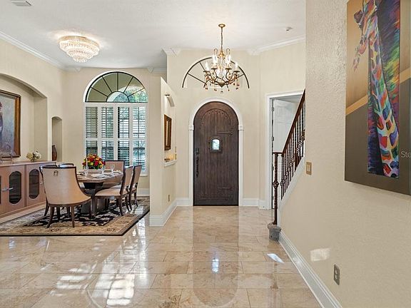 Intracoastal Luxury Redefined in Grand Haven! Set within the exclusive Front Street enclave of Grand Haven, this two-story, 5 bedroom masterpiece captures the essence of waterfront elegance. Perfectly positioned along the Intracoastal Waterway, this home offers a blend of architectural sophistication, serene privacy and resort-style living—a true sanctuary for those who expect nothing less than extraordinary. Beyond its timeless curb appeal lies a residence designed with sleek marble flooring through almost the entire home, anchored by an electric fireplace framed in matching stone—a subtle statement of modern refinement. A formal dining room sets the stage for elevated entertaining, while crown molding, high-end fixtures and thoughtful built-in detailing reflect the home’s craftsmanship throughout. The kitchen is a culinary showcase, featuring exotic granite countertops, shaker-style cabinetry, stainless steel appliances and a double-door refrigerator—a space as functional as it is stunning. Step outside and the backyard becomes the centerpiece of this exceptional property. With beautiful travertine flooring, an endless pool that allows you to swim against the current and a fully equipped outdoor kitchen with built-in appliances and granite surfaces - every element was designed for effortless hosting and relaxation. The pool-access bathroom offers dual vanities and a glass-enclosed shower, making it perfect for guests. The primary suite is a statement of refined comfort, complete with private access to the pool area, a custom walk-in closet and a luxurious ensuite boasting dual vanities, granite surfaces, a stand-alone soaking tub, glass shower and private water closet. Upstairs, an expansive bonus room with a fully appointed kitchenette provides endless flexibility—ideal for guests, extended family, or a private retreat. Sliding glass doors open to a spacious balcony overlooking the lushly landscaped backyard and the scenic Intracoastal beyond—a truly breathtaking view! And just steps from your back door, a private, covered dock awaits—ready to house your boat and provide a front-row seat to Palm Coast’s most picturesque sunsets. Surrounded by mature tree canopies, stone walkways and manicured grounds, this home delivers an unmatched sense of serenity while being moments from the best of coastal living. Residents of Grand Haven can enjoy access to an impressive array of community amenities, including a private Jack Nicklaus golf courses, a state-of-the-art fitness center, multiple swimming pools, tennis and pickleball courts, walking and biking trails and a full social calendar of community events. Every detail—from the neighborhood’s scenic beauty to its world-class amenities—embodies the effortless sophistication of the Grand Haven lifestyle. Elegant, timeless, and set in one of Palm Coast’s most coveted waterfront communities, this home is more than a residence—it’s a masterpiece of location and lifestyle. Enjoy a 2 mile esplanade to walk and ride bikes along the Intracoastal Waterway...Beautiful in the Evenings!!