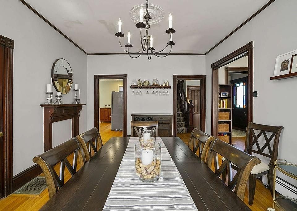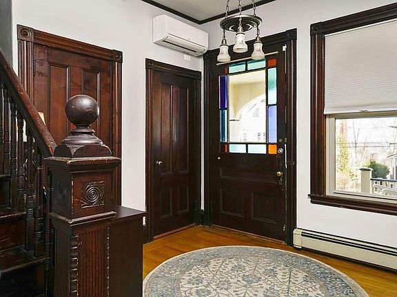 Beautiful Victorian with grand foyer in heart of Popes Hill. This home offers period detail with modern amenities. You enter this home through beautiful foyer that opens to living room with wood burning fireplace that has been relined and capped. Living room leads to large dining room with butlers pantry. Off the side entrance is large mudroom the leads to warm and inviting kitchen with remodeled 1/2 bath with washer & dryer. Off the kitchen is a den/ breakfast room with sliders that that lead to massive fenced in yard with patio and shed. 2nd floor is host to master bedroom with custom walk in closet and 3 additional bedroom and full bath. 3rd floor offers 2 bedroom and bonus space for sitting area or playroom. Recent Updates include 26x14 patio, fenced yard, 1st floor bathroom remodeled, Mitsubishi ductless AC system, Navien gas boiler, upgraded electrical to 200 amps, relined and capped fireplace,Reeds Ferry shed and front walkway & retaining wall.
