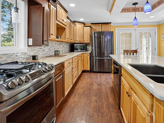 Wooded settingBright kitchenOpen layoutLarge attached garage