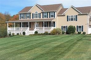 Retreat to this stunning Colonial set up on a hill in a private, peaceful setting. Enjoy panoramic views and breathtaking sunsets from the gorgeous, wraparound front porch. Inside, appreciate the tasteful, quality finishings, attention to every detail, hardwood floors throughout and a soothing, calming color palette. The kitchen offers hickory cabinets, granite countertops and a breakfast nook with french doors out to the deck. The great room, complete with a gas fireplace is the perfect place to congregate and entertain guests. The master bedroom suite with its soaring ceiling and lovely bath is sure to please. Whether you choose to relax in the huge bonus room, enjoy a book in the reading loft or sip a drink on the back deck, you will never want to leave. Additional Information: HeatingFuel:Oil Above Ground,ParkingFeatures:2 Car Attached,