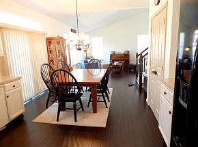 Bring the family to this well appointed home in a great family neighborhood. This Champlain model home is ready for you with vaulted ceilings, new wood floors throughout, movable island kitchen, open floor plan. Living room, family room, dining room and a large breakfast nook . Upstairs there are 4 nice bedrooms, master with full bath and walk-in closet. Home is freshly painted and ready for your family. Out back there is a fully fenced yard with pool. Community has access to Holly Lake