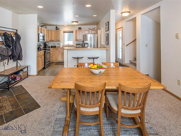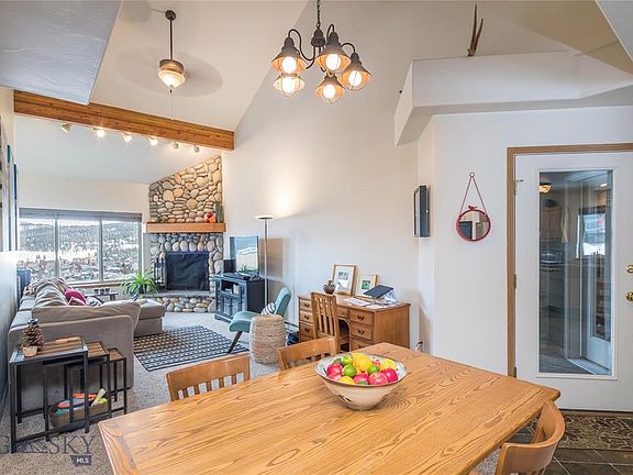 Very spacious three bedroom/three bath front row condo with views of Town Center, the meadow and the mountains beyond. Recent updates include new appliances, paint and carpet. Amenities include a river rock fireplace, vaulted ceilings in the living room, bonus room/den on top floor, a mudroom, and a recently added 3/4 bathroom on the downstairs level. The oversized one-car garage provides room for a car and abundant storage. Head up the hill just outside your back door to hop on Lone Mountain Ranch nordic trails, or walk to all of the amenities in Town Center. Big Sky Resort, the Gallatin River and numerous public land access points are just minutes away by car. Sold partially furnished.