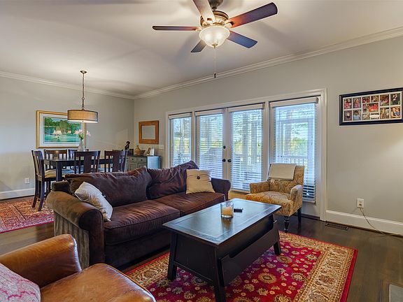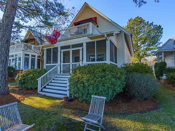 An amazing opportunity to own one of the original custom-built "tin-roof cottages" that were built when Cobblestone Park was being developed as a resort community in the year 2000. This home is a golfer's dream and a wonderful environment for anyone that wants a serene environment in a gated community. The screened porch gives you outdoor space all year and walks out to a firepit and a practice area with several putting/chipping greens and driving range. Downstairs is an open-floorplan with hardwood flooring and a large master suite. 2 bedroom suites are upstairs and one has an open balcony looking across acres of cleared range. Must see to appreciate. The premier cottage lot on top of the hill and always a summer breeze in the shade.