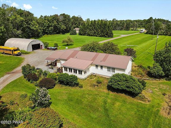 EXCEPTIONAL PRIVATE RANCH HOME WITH LARGE DETACHED GARAGE, PRIVATE POND & GUEST CABIN ON 6+ ACRES NEAR HONESDALE AND DAMASCUS! Step inside to the living room that flows into the dining area & kitchen. The main level is made for relaxing with plenty of natural light. It has 3 beds, 2 full baths & plenty of additional space to expand. The basement is partially finished & extends into a built in garage. Step outside into the country & you have a large garage to store all your equipment, toys & tools. An oversized pavilion & BBQ pit create the perfect space to host by your spring fed, quarter acre pond. Your guests can stay in the cabin on site with a welcoming living room, kitchen, bedroom & full bath. It could also be used as a short term rental! A lot of potential on 6 acres in Honesdale!