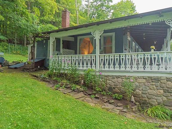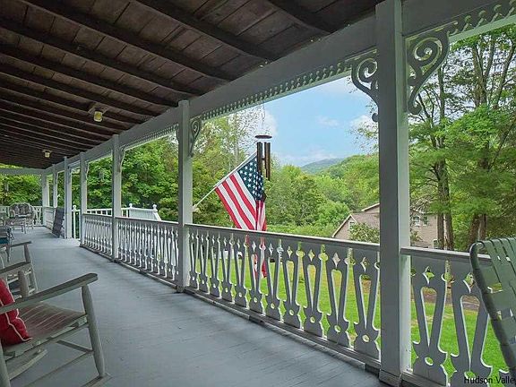 Welcome to 19 Gooding Road, a charming mountain retreat nestled in the heart of The Catskill Mountains. This turn-of-the-century three-bedroom, two-bathroom home offers a peaceful oasis with stunning mountain views. It is conveniently located, just a short drive from the bustling town of Phoenicia. Wonderfully preserved, this home has many sought-after original details, thoughtful woodworking inside and out, a stone fireplace, beautiful wood floors and beams, solid wood doors, an artful papered mural, and ample storage throughout the home. This has the potential to be both an excellent investment and a place to escape, relax and entertain. An oversized wrap-around front porch looks directly at the mountains offering expansive views. The property has mature landscaping, stone walls, a stone patio, and a fire pit, ample places to relax and enjoy the sites and sounds of the Catskills. There are also two sheds for additional storage. Recent updates to the property include new electrical (2018), gutters and plumbing (2019), a new roof (2012), a new septic waste line and septic pump (2021), a new water heater and holding tank (2020) the the cross bridge as you enter the property was reinforced in 2005. This property is close to Hunter and Bellayere Mountains and next to world-class fishing and hiking. Don't miss out on this incredible opportunity to own your paradise in the beautiful Catskill Mountains.