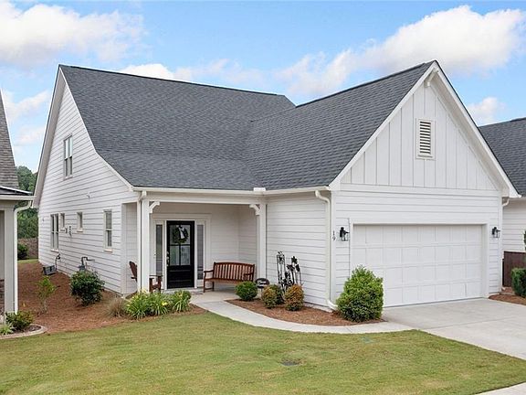 Welcome to this charming three-bedroom, three-bathroom home with a loft in a prestigious senior community. It boasts stunning views of the North Georgia mountains and many upgrades including LVP throughout home. The main level features an open living area with a cozy gas fireplace. The kitchen shines with quartz countertops, a five-burner gas range, a vent hood, and a microdrawer. Soft-close drawers and cabinet pull-outs add convenience. You'll also find two bedrooms and two bathrooms, including a spacious primary suite. The primary suite features a tiled shower with frameless glass and a double vanity with granite countertops. Upstairs, there's a roomy loft, an extra bedroom, and a full bath. The main level has a laundry room with added cabinetry for storage. Enjoy your morning coffee or evening breeze on the screened porch overlooking the fenced yard. The oversized two-car garage has epoxy flooring for a clean, durable finish. Step inside to experience the vibrant community. Explore the walking trails, play pickleball, or fish at the lake. The community also features a pool, a dog park, a garden, and a clubhouse with arts and crafts, a demonstration kitchen, and a fitness center. Unwind in the yoga room, outdoor kitchen, or gather around the firepit. The monthly HOA fee covers access to these amenities, along with lawn maintenance, trash, recycling, internet, and cable. Enjoy a lifestyle of ease at Grandview at Gateway.