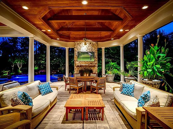 A true oasis ideal for entertaining year round, whether hosting friends, family or business associates, this backyard retreat is the ideal stay-at-home setting. 2+ private acres on over 350ft of Golf Frontage along the Jack Nicklaus Signature Course in Carlton Woods. With views of the #8, #9 & Bear Branch Lake, this lot is one of the best CW has to offer. Highlights include gorgeous tropical pool & garden views throughout; nearly 4,000sf of outdoor entertaining w/sunken summer kitchen/bar, resort pool/spa, & an exceptional pavilion w/fireplace. Inside, expansive living spaces offer an impressive primary suite w/private den, fireplace, exercise room, his/her closets w/private laundry. Kitchen showcases a stunning Thermador Column Feezer/Fridge/Wine center. A must see first floor playroom is sure to encourage any child's imagination. Upstairs 2nd laundry, over-sized game/den & media rooms; all bedrooms have en-suite baths, large closets, generous windows. 4 car garage w/room for lifts.