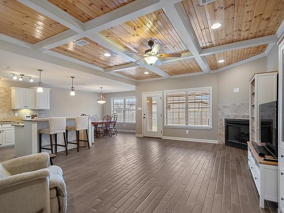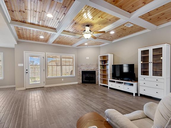 Don’t miss this well-maintained home in Churchill Downs. 3 bedrooms/2 baths with split floor plan. Living room has gorgeous wooden tray ceilings, gas fireplace and wood like porcelain tile floors. Kitchen has granite countertops, tile backsplash, under cabinet lighting, stainless steel appliances, refrigerator conveys, stove is gas, large eat-in kitchen/dining area. Primary bedroom has custom tile shower, jetted tub and large walk-in closets. Separate laundry room with tons of space. In the backyard you will find a covered patio with a wooden ceiling and fan and a fully fenced, flat back yard for the pets to run. Don’t miss this cute as a button house in Cabot School District!