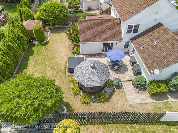 Welcome home to the wonderful community of Parkside at Howell. This Worthington Model boasts an extended family room area with sliders to a backyard oasis. Mature landscaping and a covered gazebo off the deck, for lazy days in the sun. Inside features cathedral ceilings and a gas fireplace for chilly winter evenings. The open floorplan to the kitchen allows for endless entertaining possibilities. Need to work from home, have a main level 4th bedroom / guest space, or a dedicated work out area? French doors lead to an additional flex room for whatever your lifestyle demands.Three bedrooms, two baths upstairs give plenty of space for privacy.This wonderful home has been freshly painted, new carpeting, newer roof, gutters