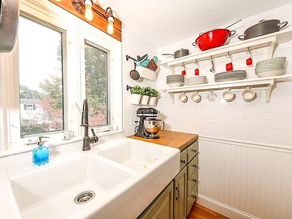 Farmhouse chic! Expanded Colonial/Cape has lots of character with a nice design twist. There are four bedrooms and one bathroom. Kitchen with apron front white farm-style sink, ice white appliances, butcher block counters, and great light. Spacious patio with pergola, as well as large backyard. Perfect for pups and play. Nice potential in the basement for additional playroom/exercise/or family room. Older heating system ,Great Location, on the Roslindale line, George wright Golf course just around the corner . .
