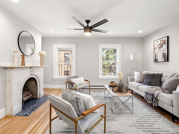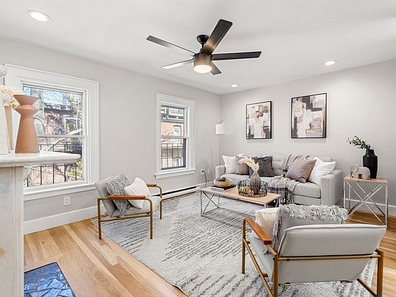 This bright, floor through penthouse unit on Gray street sits perched atop a two unit rowhouse on one of the Golden Triangle's prettiest streets. Nestled in one of Boston's most cherished neighborhoods, this home blends classic charm with modern features. Two bedrooms flanking a full bathroom comprise one level. Walk upstairs to the main living level to find an open floorplan with a fireplace and marble mantle as well as full stairway leading up to a hatch to the roof. Build your ideal roofdeck on your deeded roof with the infrastructure already there. Hardwood floors recently refinished to their original luster lend warmth to the home. Newly renovated kitchen with shaker style cabinets and clean quartz countertops also on the second level. Steps from the South End's restaurant row. Near Back Bay MBTA and all of the shops and restaurants on Newbury Street.