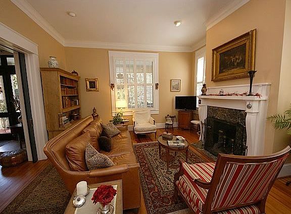 Tucked away on one of Charleston's quietest streets, this 1910 Craftsman style home features a floor plan that really flows! A large foyer leads to double parlors with large windows and high ceilings. The family room with floor to ceiling windows opens into a spacious eat-in kitchen which was recently renovated with custom cabinets, Zodiac countertops, stainless steel appliances, hardwood floors and a walk in pantry with wine storage shelves. The second floor master suite has his and her closets and ample built-in cabinets and drawers. Master bath has been completely remodeled with his and her vanities, Jacuzzi tub and separate shower with dual heads. Guest bath was also completely renovated with imported ceramic tile and new fixtures. The laundry room conveniently located on the second floor also has ample room for crafts or tool work space. The guest room and a study or child's room complete the second floor. The third floor boasts a large bedroom and ample walk in storage. The exterior was painted in 2009. Windows are protected with 3m film for sun control. Transferable termite bait system. The huge front porch and back deck are suitable for entertaining and dining. The garden was designed by Sheila Wertimer, one of Charleston's premier landscape architects. If square footage is important, measure!
