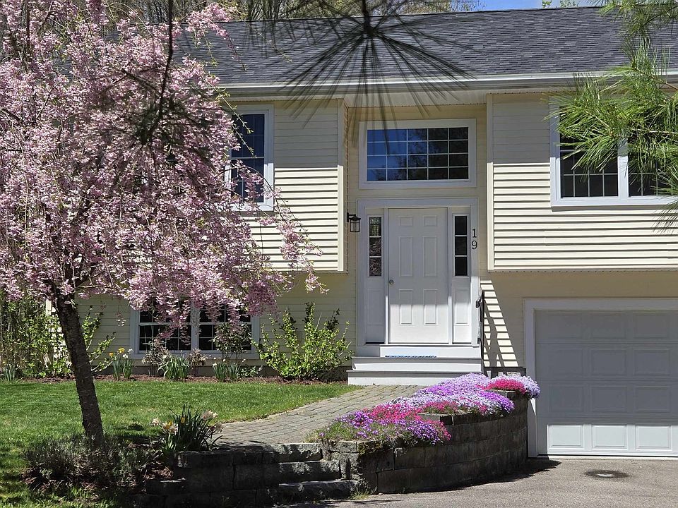 Eliot, ME; the way life should be and can be in this impeccably maintained home with open concept living space, soaring ceilings and drenched in natural sunlight! Beautifully situated back from the road, enjoy privacy with lovely plantings, high bush blueberries, weeping cherry, and the raised gardens abutting a wooded rear yard. Enticing kitchen features warm maple cabinets, solid surface counter and stainless-steel appliances with great work space and center island open to the living space with gas fireplace and dining area with sliders to the Trex deck overlooking the yard. Primary bedroom has en-suite bath plus great flex space in the finished lower level. In the sought after RSU 35/MSAD 35, a small town with great community feel with local boat launch, parks and playgrounds and a stones throw to the Piscataqua River and the Dead Duck Boat launch. Oversized 2 car garage and municipal water and sewer. This home has it all!