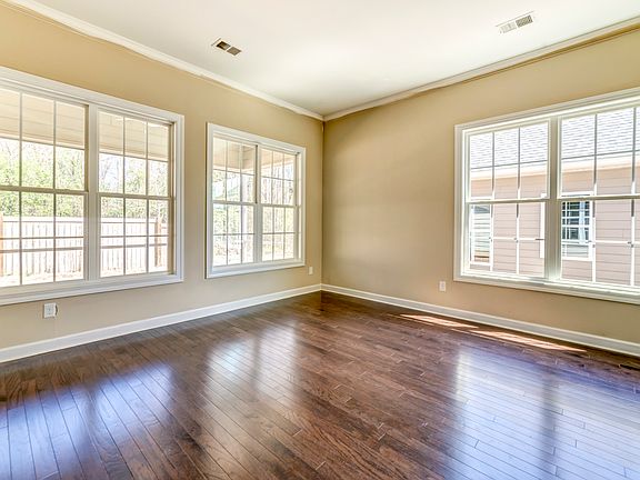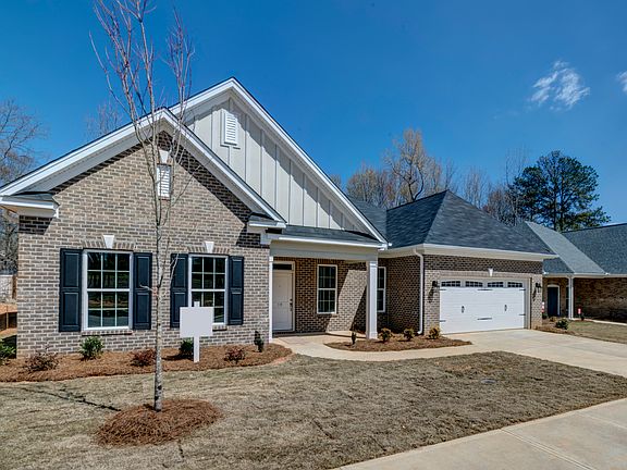 This charming one story home offers a two-car garage, enormous screened-in patio, sunroom and private back yard. The exterior is brick and hardie board siding. Three bedrooms, two-and-one-half baths and a flex room that is perfect for an office or formal living room. The open floorplan kitchen with a center island, coffered ceiling dining room and family room with a gas fireplace are great for entertaining. A gorgeous master suite is right off the family room featuring a trey ceiling, his and her closets, a ceramic tile garden tub and walk-in shower, and double vanity sinks. Some additional features on this home include under cabinet lighting and a gas range oven in the kitchen, hardwood floors throughout, and crown molding. A beautiful home for a beautiful community, only minutes to I-385 and shopping!