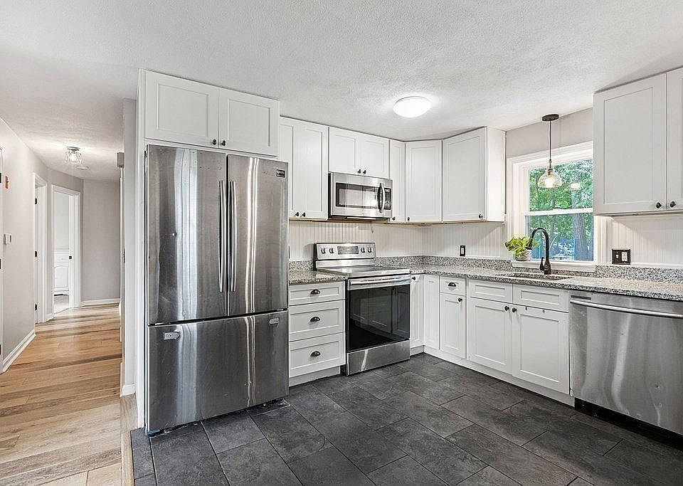 It's close to the Elementary, Middle, and High schools, with Private Schools a short distance away. The main features are 3 bedrooms, 2 full bathrooms with one having two wash sinks, Granite countertops and wainscoting in the kitchen, recessed lighting, freshly painted inside, and a finished basement not recorded on public record that increases the square footage of this fantastic home to well over 1500 square feet, that includes a Family Room, and a room the buyer can use for a Den, Office, or a Kid's Playroom.