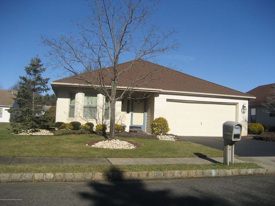 Terrific Hampton model with 2 car garage, 2 bedrooms, 2 bathrooms, eat-in kitchen, Den, large living room -dining room combination with cathedral ceiling with skylights, leading to deck/patio in rear of home. Laundry room. Newer windows. Most of the Home is painted in a neutral color.Many activities, including Bocce, Swimming, Tennis, Line dancing, Yoga, Knitting club,Community Bus to shopping and Local area.