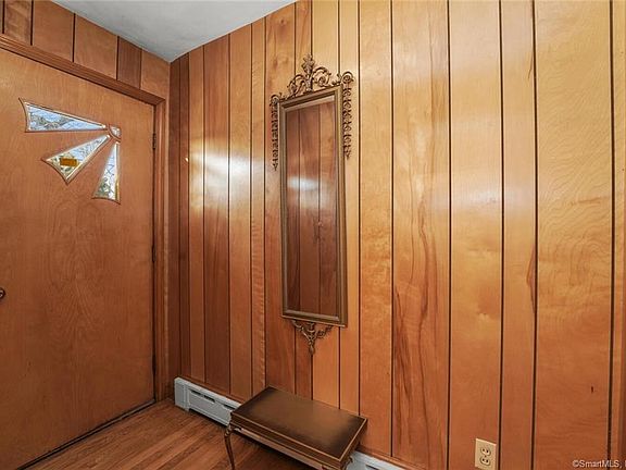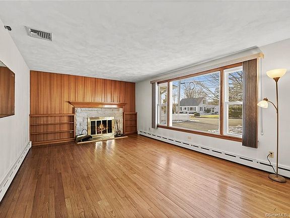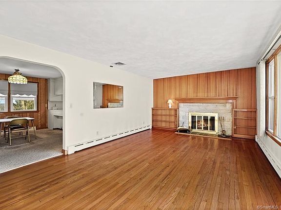 Fantastic opportunity to purchase this well-constructed 2 bedroom ranch This home has never been on the market before. Features include a large, sunny living room with a wood-burning fireplace and built-in bookshelves, a spacious dining room, a cozy den, and two generous-sized bedrooms. Hardwood floors, replacement thermopane windows, and a newer furnace, roof, and solar panels to keep your energy bills down. The huge walk-out basement includes a laundry area, full bathroom, multiple closets, and both storage and furnace rooms. Take a look at the beautiful level yard in the back for your outdoor enjoyment. This home has many extra features such as an exterior storage room, French drains, fences, a heated garage and an easy-to-maintain brick exterior. Easy access to shopping, Route 34 and the Merritt Parkway.