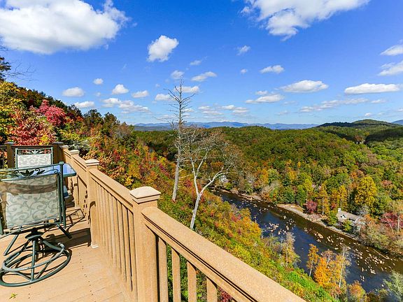 Murphy NC - WOW - Do you want to see & hear the sound of the Hiawassee River & Want Spectacular Long Range Mountain Views? This Riverfront Home is located in River Ridge, Pristine FULLY FURNISHED 3Bed/3Bath Custom Designed Home w/ 2 Car Basement Garage finished w/Tall ceilings for truck parking. The Main Floor includes Custom Kitchen w/Hickory Cabinetry & Granite Counter Tops w/Matching Kitchen Island & handcrafted hand blown hanging lighting over island, Walk in Pantry w/shelves for all your culinary supplies, Large Open Great Room w/T&G wood Ceilings plus a hand crafted metal stair rail & Thermostat controlled Stone Vented Gas Log Fireplace, Lots of Windows for natural lighting to enjoy The Scenic Views, Oak floors w/Carpet in Bedrooms & tile flooring in Bathrooms, Bedroom office w/ Desk & Shelving & High Speed Internet for your home business or just staying in touch w/ family & friends. The Basement includes a Large Family Room w/Thermostat Controlled Free Standing Vented Gas Log Stove for those cool evenings & cuddle time. there is also a Thermostat controlled wine room, Plus a Craft Room w/ Bonus Room that could easily transformed into a mother in law suite. The mechanical room is designed w/water shut valves for easy winterization. The exterior is Vinyl Siding w/Stone Decor & the yard is landscaped with 2 handcrafted water features & one is a flowing waterfall & the yard has gates & fencing for pets. Wow there is so much more. Price Reduced, Call for more info.