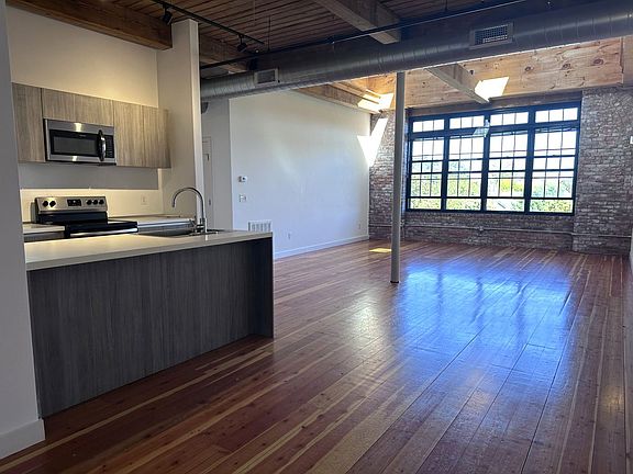This beautifully appointed and exceptionally spacious 2-bedroom, 2-bathroom residence sits on the top floor of an elevator building. Flooded with natural light, the home showcases gleaming hardwood floors, exposed brick accents, high ceilings, plentiful closet space including two walk-in closets, and contemporary finishes throughout. The open-concept kitchen features stainless steel appliances and overlooks a bright, airy living area with vaulted ceiling and views of Downtown Providenceperfect for both relaxing and entertaining.The standout primary suite boasts soaring cathedral ceilings, an en-suite bathroom with granite counters and tiled bath surround, and a unique bonus loft space ideal for a reading nook, or extra storage. The second full bathroom offers added comfort and convenience. Additional amenities include central heating and cooling, in-unit washer and dryer, and garage parking for two vehiclesa rare find!
