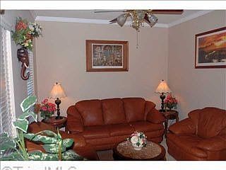 Well maintained and recently painted four bedroom home with crown molding throughout Kitchen features 12" ceramic tile floors, gas range, with tile surround, breakfast bar/island opens to den with gas log fireplace and berber carpet. Back stairs to upper level. Ceiling fans in all bedrooms. Master has vaulted ceilings and large bath with dual sinks. Upper level CAT 5 wiring. Large garage with extra shelving for storage.