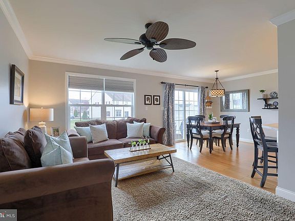 Beautifully appointed, move-in ready 3 BR, 2.5 BA townhouse in the Village of Springbrook Farms with a finished lower level. Desirable open-concept first floor with living room that opens up to the kitchen featuring a large island with seating, gas range, crown molding, dining area with upgraded lighting fixture and newer sliding glass door leading to the patio. The powder room was updated with wainscotting and chair rail molding. The 2nd floor includes an owner’s suite with a walk-in closet, full bath with ceramic tile flooring and double sinks. The second floor also features two additional bedrooms and another full bathroom and laundry area. The full finished basement provides you with a spacious family room and multiple storage closets. Relax on the covered front porch or patio with privacy fence that overlooks the common area. Enjoy carefree living. The association is responsible for lawn maintenance, exterior maintenance, trash and snow removal! Economical gas heat, gas hot water and central air unit replaced in 2018. 1 car garage. Custom shades. Excellent location in Palmyra School District and a short drive to the Hershey Medical Center and all the Hershey attractions.