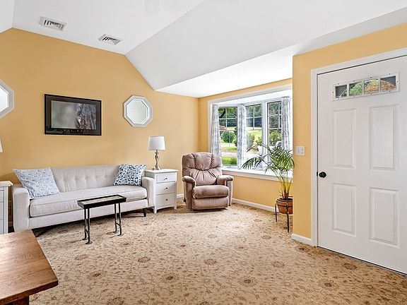 Bright and immaculate ranch in an excellent Easthampton location with mountain views. Nicely updated, two bedrooms, one full bath with oversized soaking tub and separate shower. Dining room with fireplace located off the sunny kitchen. Large living room with slider to wood deck and shed. First floor laundry, a very comfortable home for easy living. Fantastic flat back yard with gardens and mature trees.