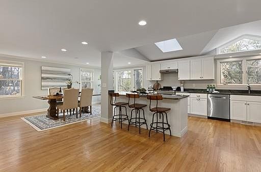 Nestled in the woods, surrounded by natural beauty and minutes from town center and commuting roads, 19 Hayward truly embodies the best of both. Don't be fooled by the quaint front, when you open the front door to the expansive, gutted and open floor plan, you will feel the peace as you view trees from every window. A huge mudroom with plenty of cubbies off the two-tone kitchen, with tons of natural light pouring in from windows and skylights. Fireplace living area with built-ins and a spacious home office or guest bedroom with a lovely full bath on the first floor. Upstairs, four bedrooms, the master with cathedral ceilings, wonderful walk-in and serene master bath. Family bath with two sinks. Finished basement with expansive windows and slider to the spacious and adventurous yard. Swing sets, soccer practice and fairy house making are all possibilities. Extra buffer of town land to extend your adventures. Come be amazed. Enjoy one of the first offerings of 2019. New Hastings school!
