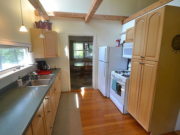 Charming waterfront home on beautiful Forest Lake. Home features large master suite on main floor, living room with vaulted ceilings and brick fireplace. Upper level has 2 bedrooms and full bath. Electric heat throughout with propane stove in living room. Also mini ductless system for heat and A/C. Exterior highlights large main deck with 2 smaller decks, low maintenance property with 60' of frontage. Perfect as a vacation home or full time residence. Call Arlene @ 631-742-7717