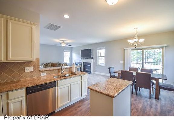 Beautiful, two story home in gated community w/ pool & clubhouse! Open floor plan offers large den/living area that opens to gorgeous kitchen w/tiered cabinets, granite counter tops, island & stainless appliances. Love, love these white cabinets! 4 bedrooms/2.5 baths. Enjoy grilling out in FENCED IN BACK & covered porch. Located only 20 min. or less to Ft. Bragg! NO CITY TAXES.