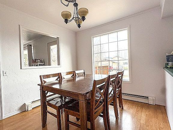 Highly motivated seller! This family home features a beautiful sun wood deck, large windows in the living-room and kitchen that allow an abundance of natural light to flow in. The calm, cozy colors and newly added vinyl flooring make this home welcoming and inviting. Detached garage/shop. The yard features the perfect mixture of space for gardening and family fun!
