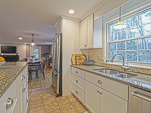 Welcome to your perfect family home! This beautifully maintained Colonial offers 4 bedrooms, 2.5 baths and a wonderful neighborhood location. The first floor has an ideal layout highlighted by an updated kitchen with beautiful granite counters, an island and stainless steel appliances. The open floor plan includes a living and dining room w/fireplace, perfect for entertaining or spending time with those you love. Also on this floor enjoy a den, convenient heated mudroom and a newly built home office. Gorgeous wood floors flow throughout the entire house. Fresh paint makes this a stunning move-in condition home. Upstairs you will find a master bedroom and master bath, three additional generously sized bedrooms and a 2nd full bathroom. A finished basement with a 2nd fireplace adds some additional entertaining space. Updates include central air on the 2nd floor and an on demand water heater. Set on a 2 acre wooded lot with a 2 car garage. This home needs nothing. DON'T MISS OUT!